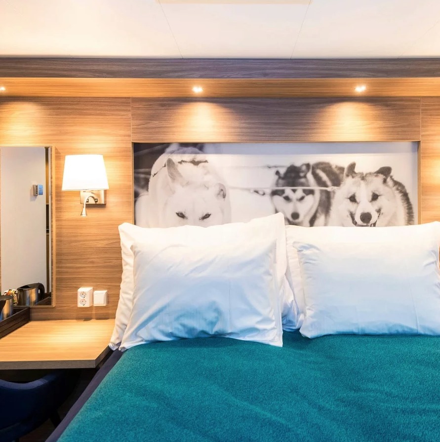 Our Polar outside cabins are situated mostly on middle or lower deck and all have bathrooms with shower/WC.These comfortable, refurbished cabins for up to two people on the middle decks have two single beds, one chair and desk, and a hairdryer.